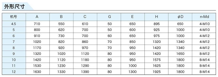 風壓、風置介于軸流式和離心式之間的一種新型混流式風 機。